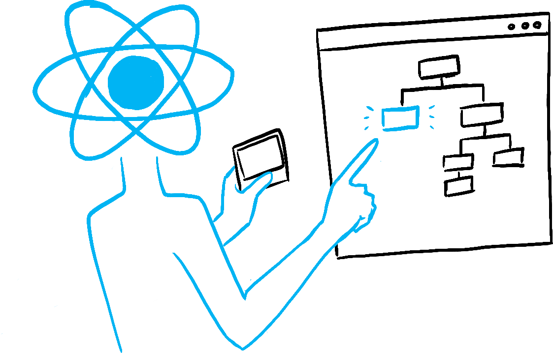 - سپس React صفحه را بهروز میکند تا با نمای کلی ای که شما بازگرداندهاید، همخوانی داشته باشد.