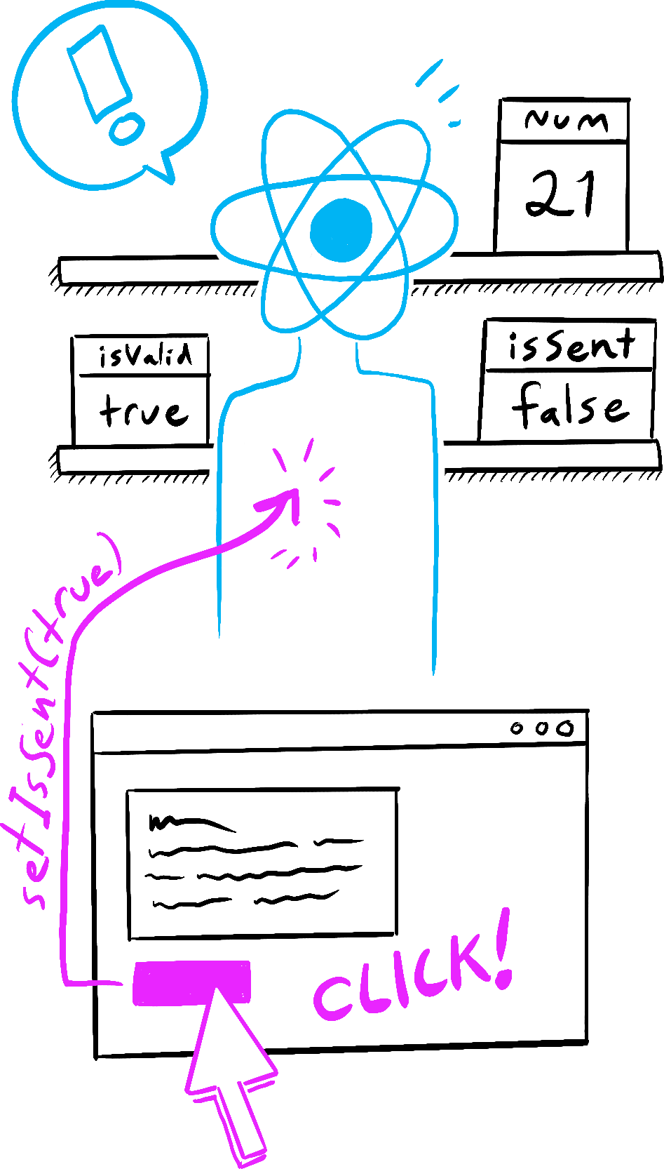 در این مثال، زمانی که دکمه “ارسال” را فشار میدهید، setIsSent(true) به ریاکت میگوید که واسط کاربری را مجدداً رندر کند: